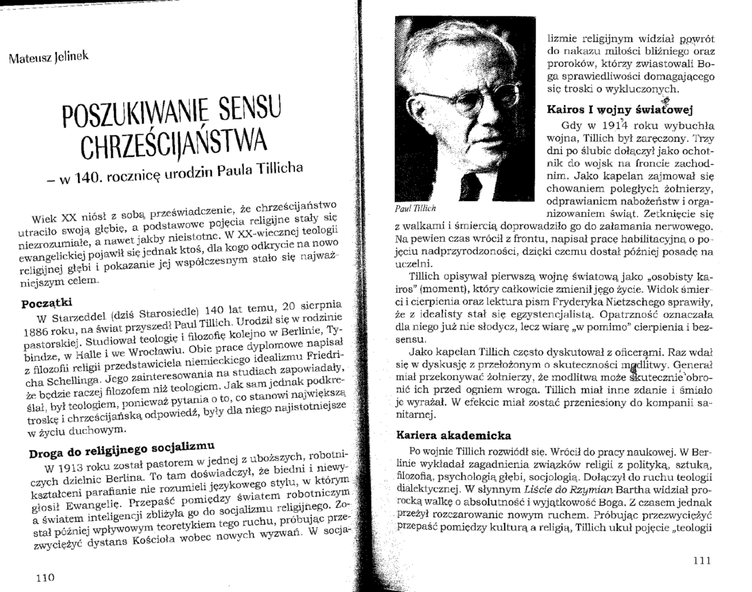 Poszukiwanie sensu chrześcijaństwa – w 140. rocznicę urodzin Paula Tillicha